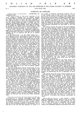Summary of articles/ Polska Sztuka Ludowa - Konteksty 1967 t.21 z.1