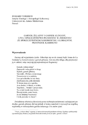 Garnek żelazny i garnek gliniany, czyli społeczeństwo plemienne w zderzeniu ze społeczneństwem narodowym i globalnym /LUD 2010 t.94