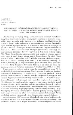 Organizacja ekspedycji badawczej na kontynencie afrykańskim u progu XX wieku na podstawie relacji Jana Czekanowskiego / LUD 1996 t.80