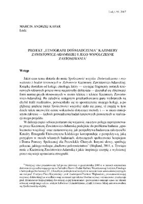 Projekt "etnografii doświadczenia" Kazimiery Zawistowicz-Adamskiej i jego wspólczesne zastosowania / LUD 2007 t.91
