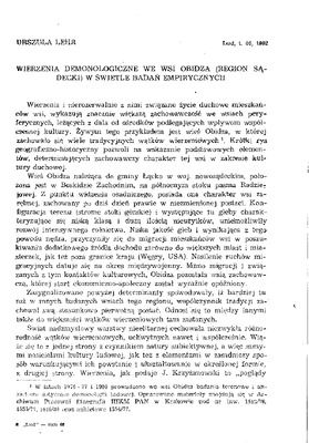 Wierzenia demonologiczne we wsi Obidza (region sądecki) w świetle badań empirycznych / LUD 1982 t.66