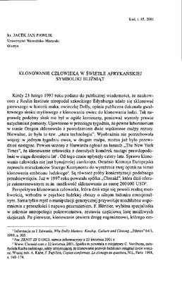 Klonowanie człowieka w świetle afrykańskiej symboliki bliźniąt / LUD 2001 t.85