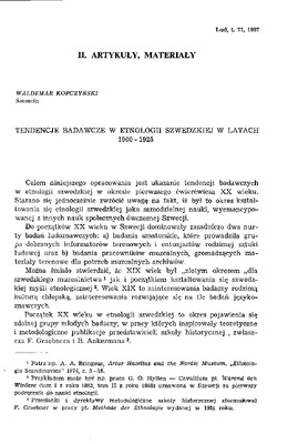 Tendencje badawcze w etnologii szwedzkiej w latach 1900-1925 / LUD 1987 t.71