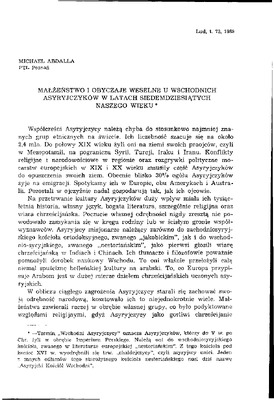 Małżeństwo i obyczaje weselne u wschodnich Asyryjczyków w latach siedemdziesiątych naszego wieku / LUD 1989-90 t.73