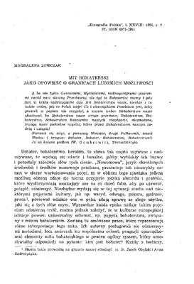Mit bohaterski jako opowieść o granicach ludzkich możliwości / ETNOGRAFIA POLSKA 1984 t.28 z.2