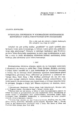 Symbolika uniwersum w wyobrażeniu rzeźbiarskim mitycznego tańca kreacyjnego Siwy-Nataradży / ETNOGRAFIA POLSKA 1984 t.28 z.2