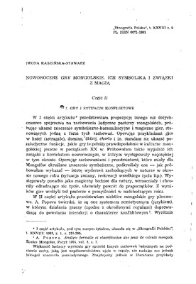 Noworoczne gry mongolskie. Ich symbolika i związki z magią / ETNOGRAFIA POLSKA 1984 t.28 z.2