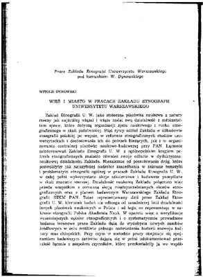 Wieś i miasto w pracach Zakładu Etnografii Uniwersytetu Warszawskiego / ETNOGRAFIA POLSKA 1959 t.2