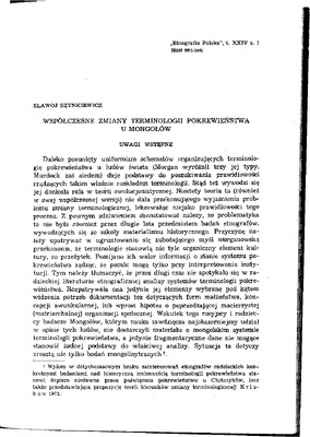 Współczesne zmiany terminologii pokrewieństwa u Mongołów / ETNOGRAFIA POLSKA 1980 t.24 z.1