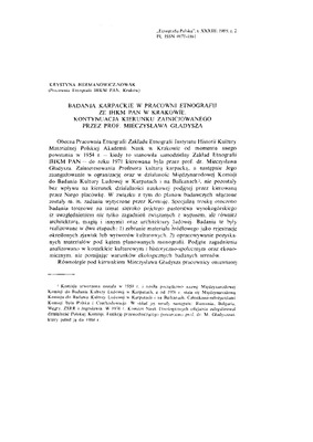 Badania karpackie w Pracowni Etnografii ZE IHKM PAN w Krakowie. Kontynuacja kierunku zainicjowanego przez prof. Mieczysława Gładysza / ETNOGRAFIA POLSKA 1989 t.33 z.2