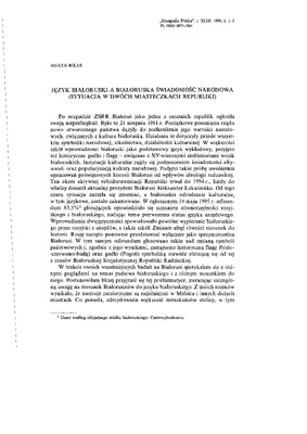 Język białoruski a białoruska świadomość narodowa (sytuacja w dwóch miasteczkach Republiki) / ETNOGRAFIA POLSKA 1999 t.43