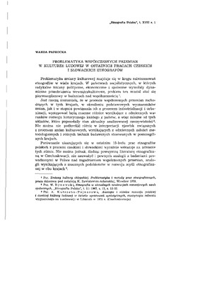 Problematyka współczesnych przemian w kulturze ludowej w ostatnich pracach czeskich i słowackich etnografów / ETNOGRAFIA POLSKA 1973 t.17 z.1