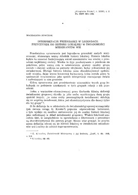Interpretacje przeszłości w legendach. Przyczynek do historii lokalnej w świadomości mieszkańców wsi / ETNOGRAFIA POLSKA 1982 t.26 z.2