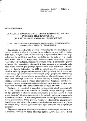 Oswiata a społeczno-kulturowe przeobrażenia wsi w okresie międzywojennym (na przykładzie wybranej społeczności) / ETNOGRAFIA POLSKA 1983 t.27 z.1