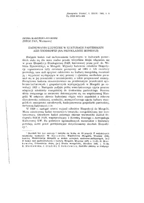Zachowania ludyczne w kulturach pasterskich Azji Środkowej (na przykładzie Mongolii) / ETNOGRAFIA POLSKA 1985 t.29 z.1