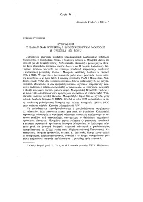 Sympozjum z badań nad kulturą i społeczeństwem Mongolii, 15 XII 1975 / ETNOGRAFIA POLSKA 1977 t.21 z.1