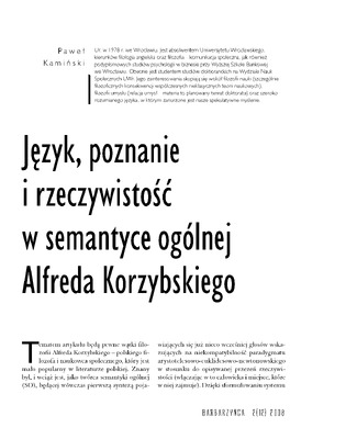 Język, poznanie i rzeczywistość w semantyce ogólnej Alfreda Korzybskiego/ Barbarzyńca 2008 nr 2 (12)