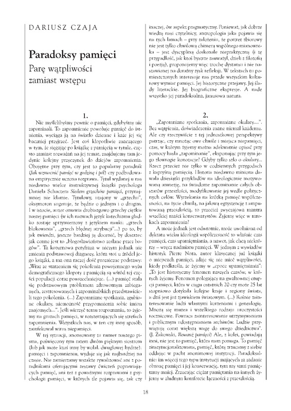 Dariusz Czaja ♦ PARADOKSY PAMIĘCI