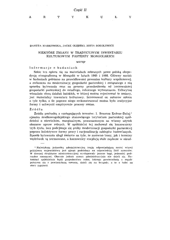 Niektóre zmiany w tradycyjnym inwentarzu kulturowym pasterzy mongolskich / ETNOGRAFIA POLSKA 1968 t.12