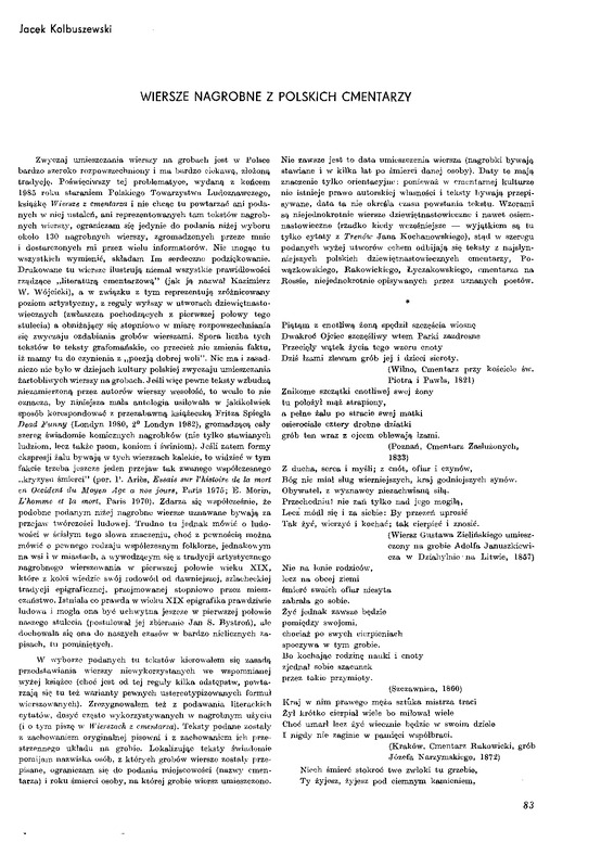 Wiersze nagrobne z polskich cmentarzy / Polska Sztuka Ludowa - Konteksty 1986 t.40 z.1-2