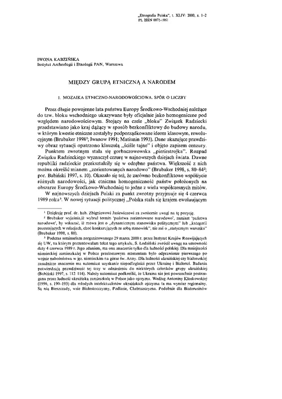 Między grupą etniczną a narodem / ETNOGRAFIA POLSKA 2000 t.44