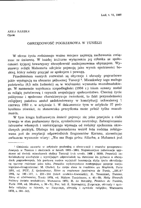 Obrzędowość pogrzebowa w Tunezji / LUD 1987 t.71