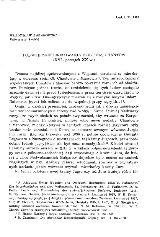 Polskie zainteresowania kulturą Chantów (XVI-początek XX w.) / LUD 1987 t.71
