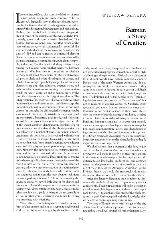 "Batman" - a story of Creation / Polska Sztuka Ludowa - Konteksty 2014 Special Issue