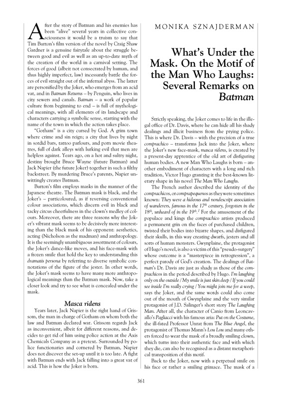 myth overly arbitrary here is a fragment of Maria Janion’s reflections on Gwynplaine. In the essay: Maska