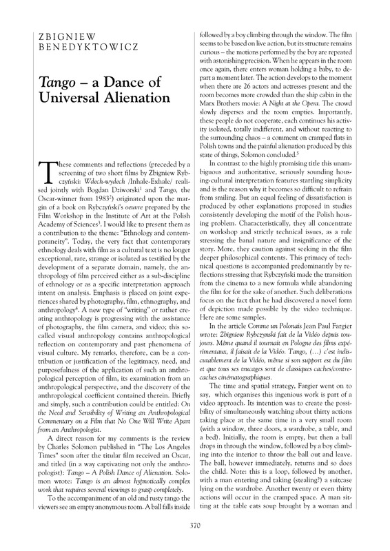 Tango - a Dance of Universal Alienation / Polska Sztuka Ludowa - Konteksty 2014 Special Issue