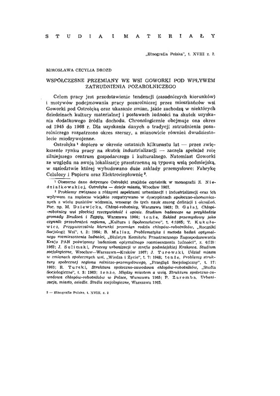 Współczesne przemiany we wsi Goworki pod wpływem zatrudnienia pozarolniczego / ETNOGRAFIA POLSKA 1974 t.18 z.2