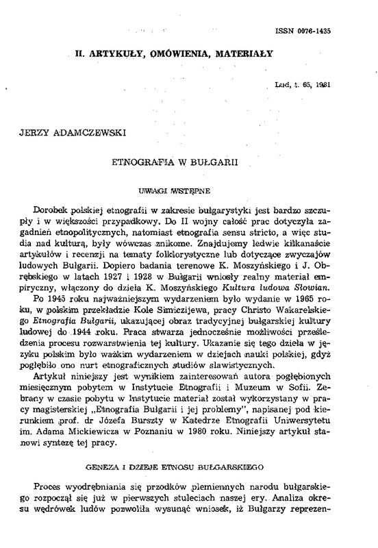 W pracy magistea-skiej "E'1Jnografia Bulgar;i:i i jej problemy", napiJsanej podkierunkiem !prof. dr Józefa Bw5'z.ty w Kaitedrze Et'Iltlgrafii Un~wersy'teltu