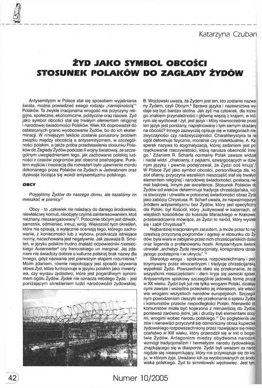 Żyd jako symbol obcości, stosunek Polaków do Żydów/ Barbarzyńca 2005 nr10