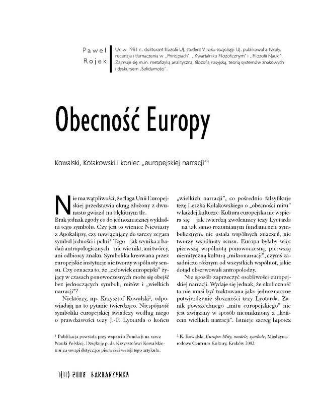 Kowalski, Kołakowski i k o n i e c „europejskiej narracji'"