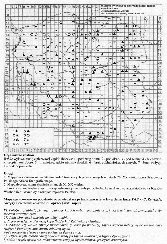 'Babka' wylewa wodę z pierwszej kąpieli dziecka w pobliżu domu/ Komentarze do Polskiego Atlasu Etnograficznego (mapy)