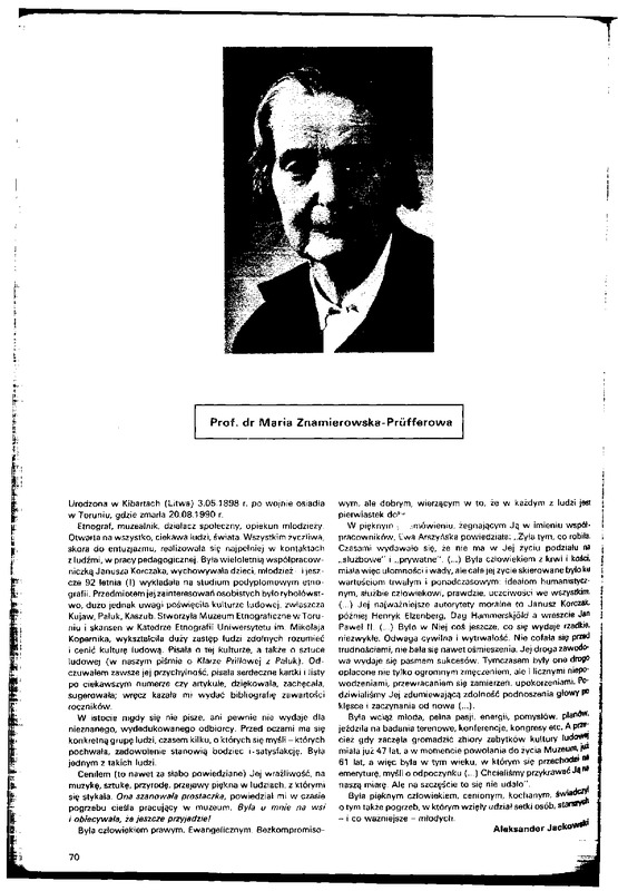 Prof. dr hab. Maria Znamierowska Prüfferowa (1898-1990) / Polska Sztuka Ludowa - Konteksty 1990 t.44 z.3