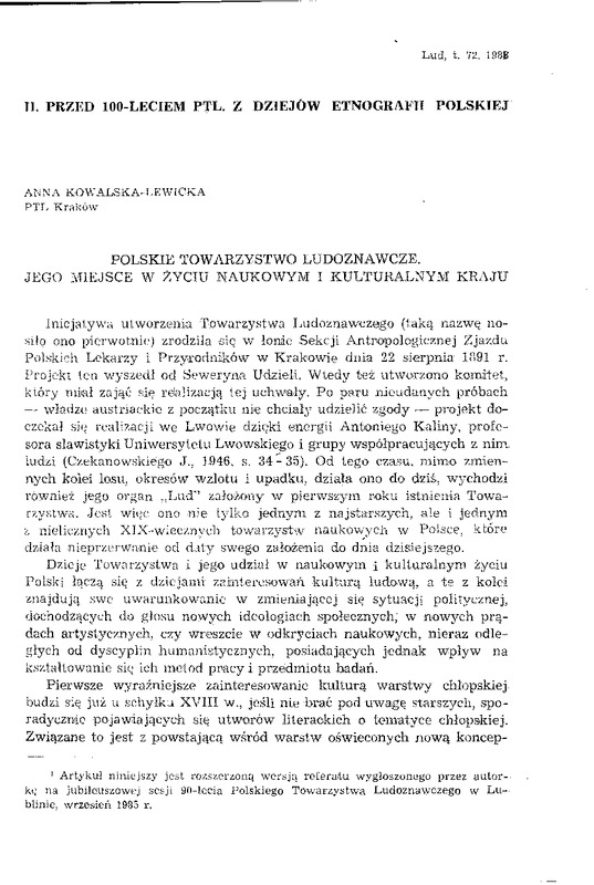 Polskie Towarzystwo Ludoznawcze / LUD 1988 t.72