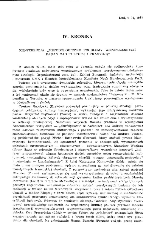 i Etnografii UMK i Komisja Metodologiczna Komitetu Nauk Etnologicznych PAN.