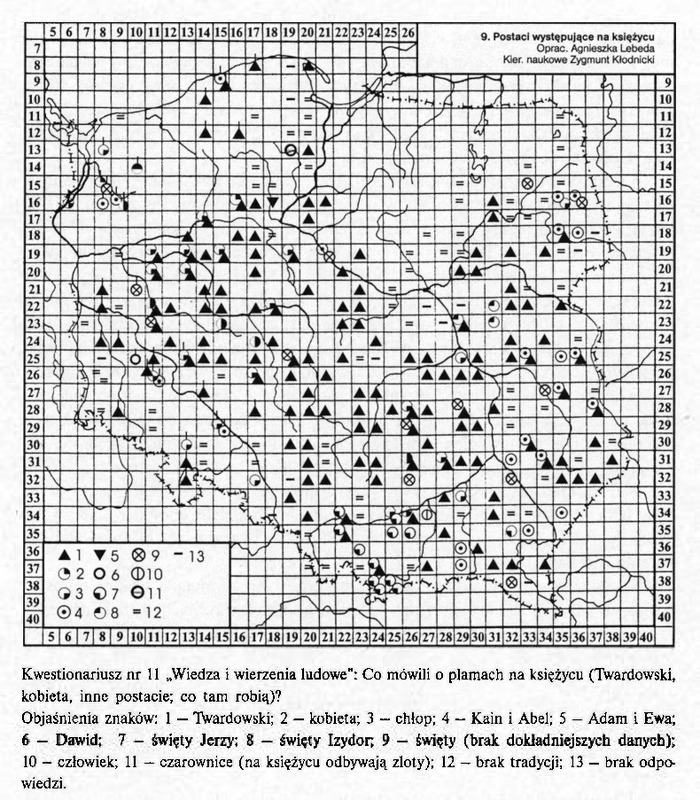 Postaci występujące na księżycu/ Komentarze do Polskiego Atlasy Etnograficznego (mapy)