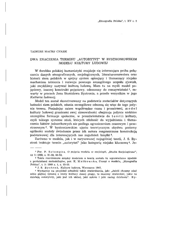 Dwa znaczenia terminu "autorytet" w bystroniowskim modelu kultury ludowej / ETNOGRAFIA POLSKA 1971 t.15 z.2