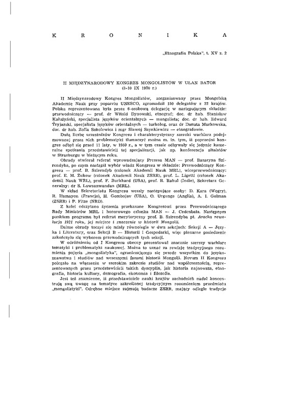 znawstwa i studiów nad wczesnymi fazami historii Mongolii. Novum I I Kongresu