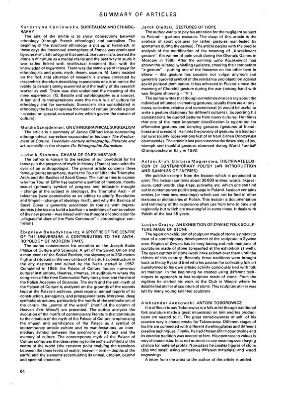 Summary of articles / Polska Sztuka Ludowa - Konteksty 1991 t.45 z.1