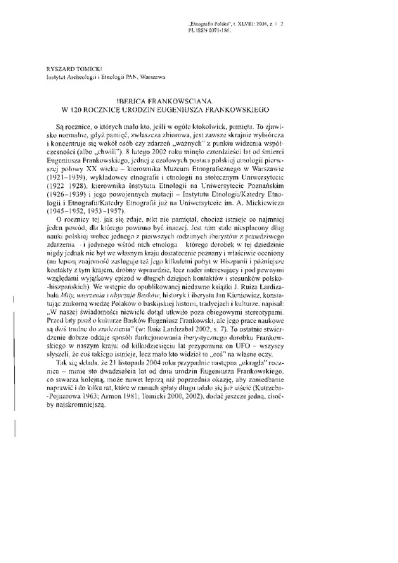 Iberica frankowsciana. W 120 rocznicę urodzin Eugeniusz Frankowskiego / ETNOGRAFIA POLSKA 2004 t.48