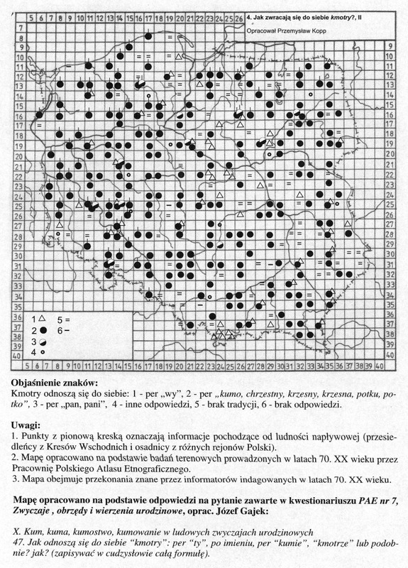 Jak zwracają się do siebie 'kmotry'?II/ Komentarze do Polskiego Atlasu Etnograficznego (mapy)
