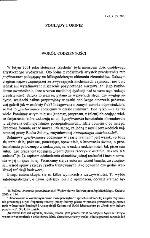 Rzeczoną formułę uznać można, jak sądzę, za jedną z myśli przewodnich najnowszej pracy Rocha Sulimy, zatytułowanej Antropologia codziennośd.