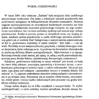 stary porządek. To - zarówno na poziomie anegdoty, jak i refleksji - rzeczywisty, a więc niepowtarzalny, performance. Przekonywać miały o tym i zachwyty Białoszewskiego, i opinie studentów.