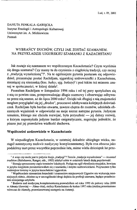 z "tradycją wynalezioną"?I. Na te ogólniejsze pytania postaram się odpowiedzieć, prezentując postać Rachiljam, ujgurskiej uzdrowicielki z Kazachstanu,