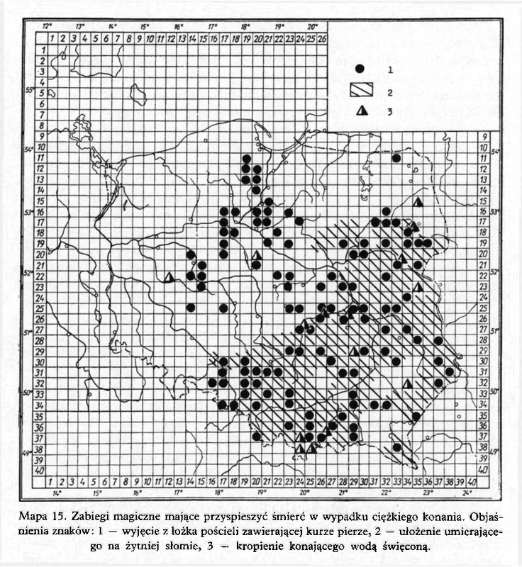 Zabiegi magiczne mające przyspieszyć śmierć w przypadku ciężkiego konania/ Komentarze do Polskiego Atlasu Etnograficznego (mapy)