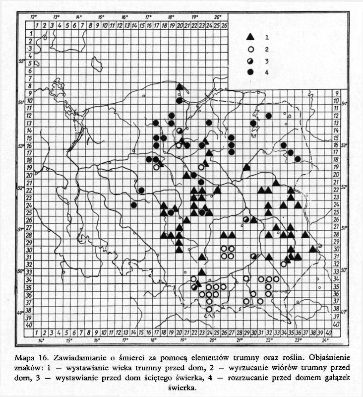 Zawiadamianie o śmierci za pomocą elementów trumny oraz roślin/ Komentarze do Polskiego Atlasu Etnograficznego (mapy)