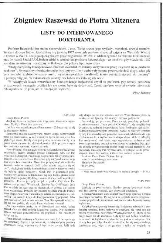 Zbigniew Raszewski do Piotra Mitznera
